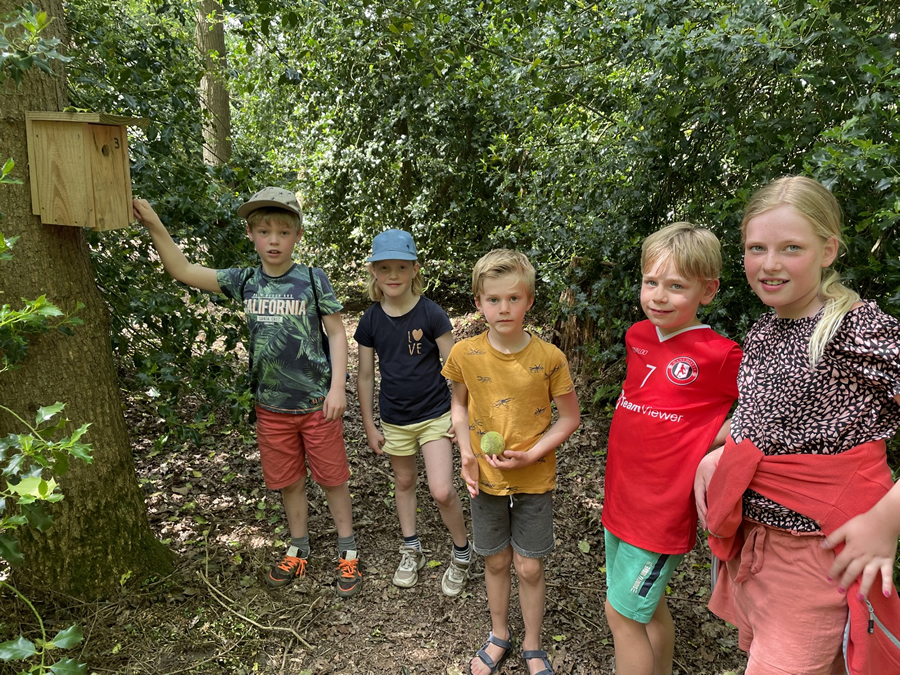 Tussen 12 april en 12 juni heeft een gezellig en geïnteresseerd groepje kinderen zes maal een rondje door het bos achter Zuideresweg 9 gelopen. Ik mocht een club van 6 kinderen begeleiden: Jessa, Syb, Fenne, Teye, Ida en Niek (en af en toe nog een vriendje erbij).