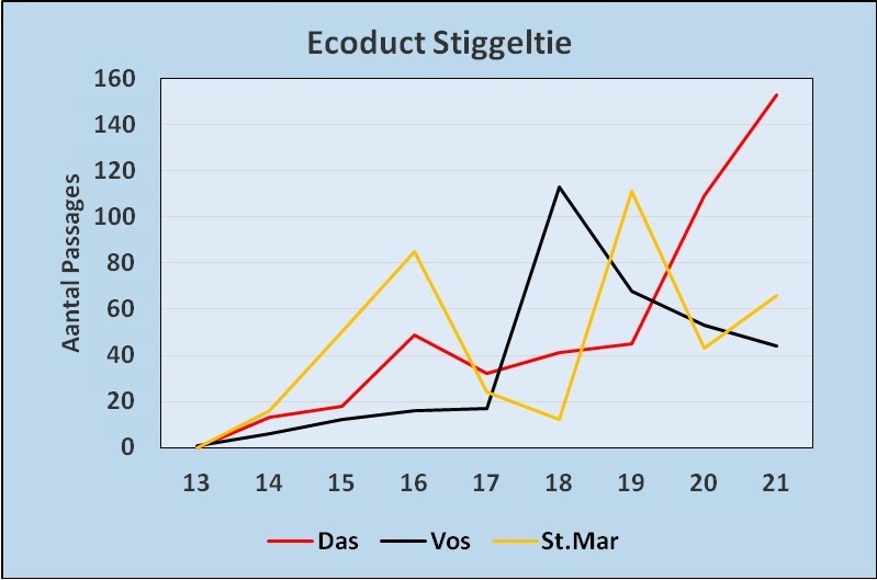 Opvallend maar niet geheel onverwacht is natuurlijk de niet ophoudende trend dat Stiggeltie meer passages laat dan Suthwalda. Mogelijk is Stiggeltie door de rust ook meer een leefgebied geworden.