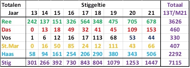 Jaaroverzicht 2021 van de passages op Stiggeltie en Suthwalda.