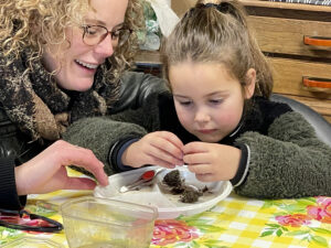 We hebben heel veel dingen voor de natuur gemaakt. Een vetbol in een kopje en pinda’s rijgen voor de vogels en een insectenhuisje. Het allerleukste vond ik het uitpluizen van een uilenbal. Ik heb heel veel schedels van muizen gevonden. Het was erg gezellig! We kregen ook nog paaseitjes en wat drinken.