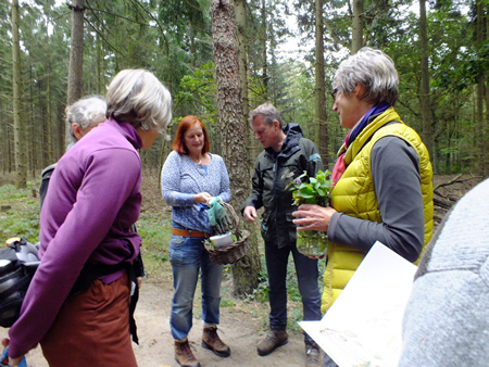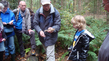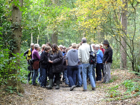 Op zaterdag 5 oktober hebben we gewandeld in het Faliebergbos. Nou ja, ‘gewandeld’ is wellicht een onjuist woord. De deelnemers – liefst 60 in getal – waren zó leergierig en enthousiast over al het eetbare dat zomaar voorhanden is in de natuur, dat we in drie uur tijd hooguit een kilometer of twee hebben afgelegd. Desalniettemin: een prima ochtend!