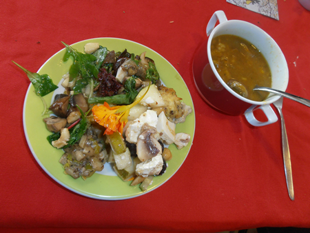 Aan het begin van de middag is de excursie ten einde. We hebben maar liefst 70 soorten gevonden tijdens deze, gezellige en uiterst leerzame korte wandeling, die toch drie uur duurde! Met een groep, die zich daarvoor had opgegeven, sluiten we af met een workshop rond paddenstoelengerechten onder leiding van Carla den Brock in huize Waringin. Daar blijkt proefondervindelijk hoe verrukkelijk je kunt eten van bospaddenstoelen.
